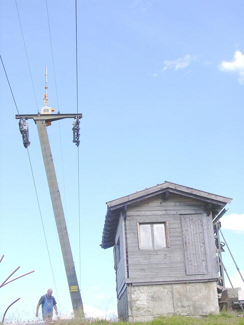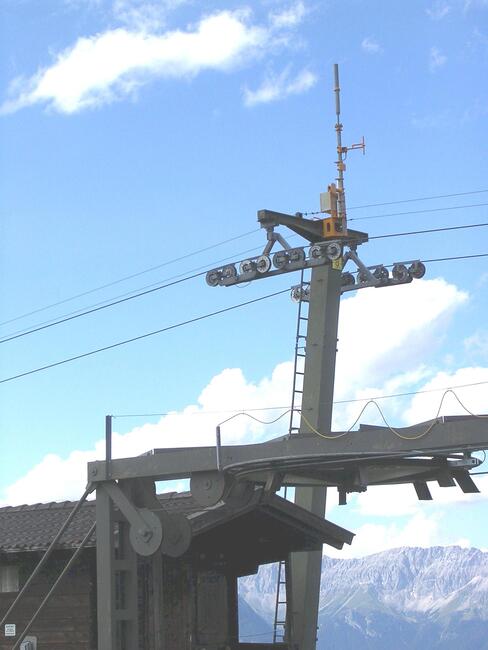 Ein weiteres Highlight war die Unterstützung einer spezialisierten Fachfirma für Seilbahntechnik. Diese konstruierte und montierte eine stabile Plattform für unsere Antennen auf einer der bestehenden Liftstützen.