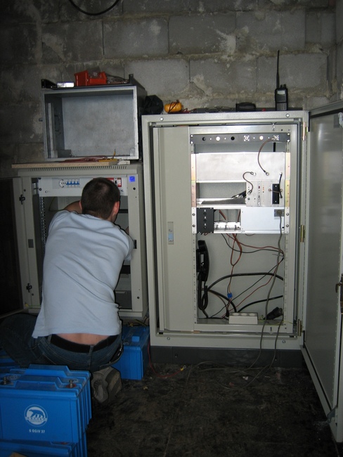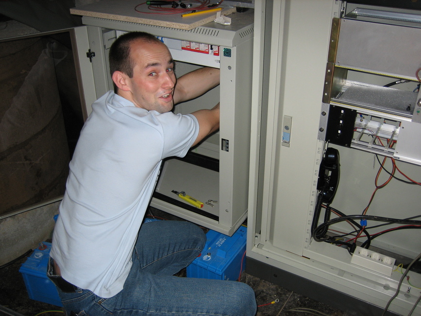 In mühevoller Eigenarbeit wurde der Keller tiefer gegraben und ein Boden eingezogen, um optimale Voraussetzungen für unsere technischen Anlagen zu schaffen. Strom für das Relais haben wir uns über eine bestehende Streckenleitung beschafft, indem wir von Stütze zu Stütze die Leitungen durchgeklemmt haben – eine kreative und effektive Lösung, die das Projekt erst möglich machte.